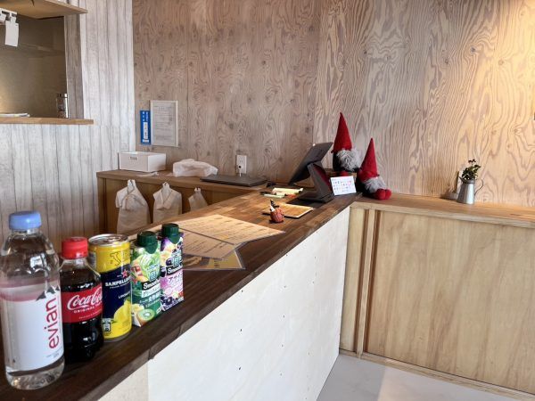お店前にはベンチ、店内にもカウンターテーブルと椅子があり、イートインも可能です。