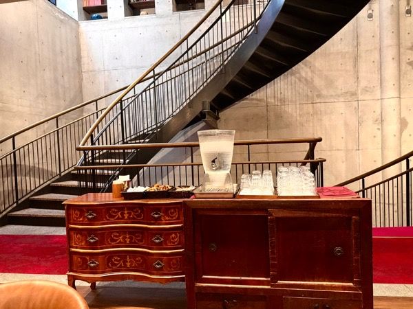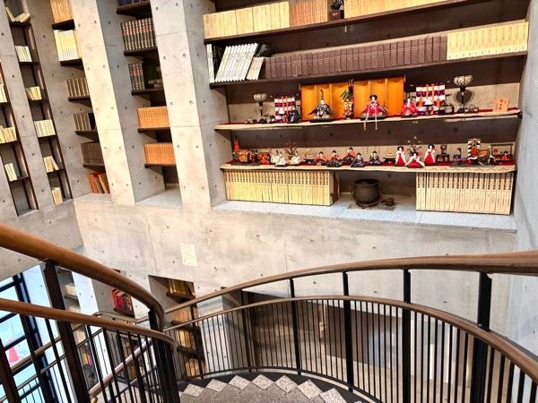 「和洋折衷」をテーマに、らせん階段の途中には豪華絢爛な雛飾りや兜、琴や茶釜、書物など現代では珍しい和の調度品が飾られています。これらは知り合いから譲り受けたりオークションで落札したものもあれば、従業員が幼少時に実際に自宅に飾っていたもの、代々受け継がれてきたものなど貴重な一品もあるそうです。「和の融合、外観とは異なる意外性もコンセプトの一つ」だそうですよ。どの年代や外国人にも喜ばれる空間だと思いませんか?素晴らしい♪