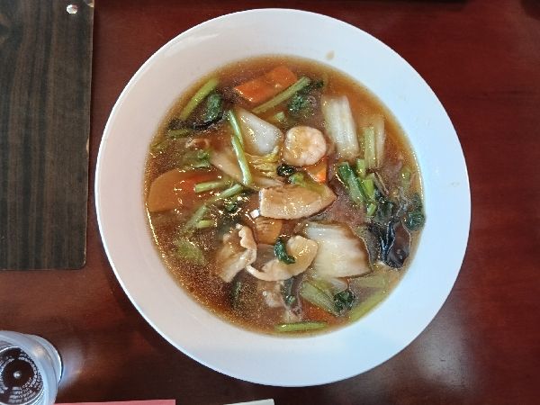 家族が注文した五目湯麺 大盛り。大盛りは100円増しです。 具だくさんでトロッとしているので、これからの寒い時期にもピッタリです。