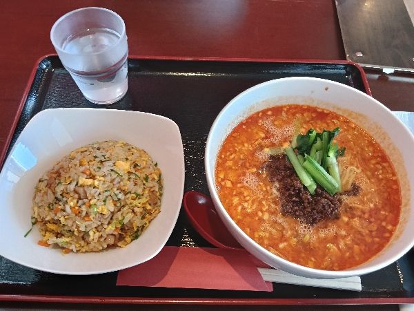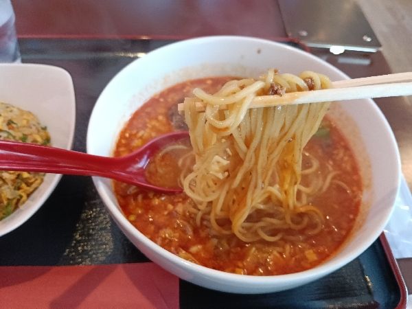 私は人気の担々麺に半チャーハンをつけた担々麺セットにしました。 担々麺が大好きなので、3回目の注文。 自家製ラー油を使用した担々麺は絶妙な辛さがあるコクのある味です。 辛い物好きにはたまらな味。 麺がスープに絡み、ラー油の香りもして美味しいです。 半チャーハンもパラパラで焼き豚の旨みがして又食べたくなる味です。