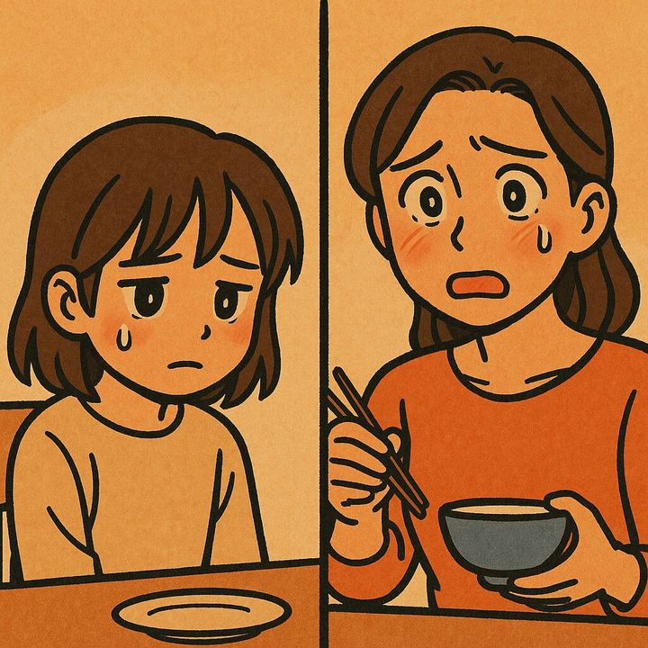 「別に」と小さな声で言うだけで、食卓の上のご飯をスプーンでつつくだけでした。