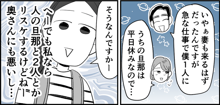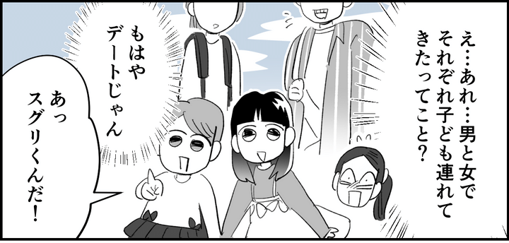 今日は祝日で、お互い家族みんなで来たのかなとあたりを見まわしましたが、保護者はコウジさんとユウコさん2人だけのようです。男女それぞれが自分の子どもを連れてきているってこと……? それって、ほとんどデートみたいに見えてしまいます。