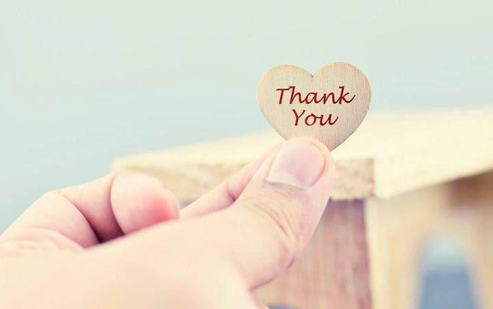 conceptual image,romantic look hand holding heart made from wood with word THANK YOU over blurred and selective focus background