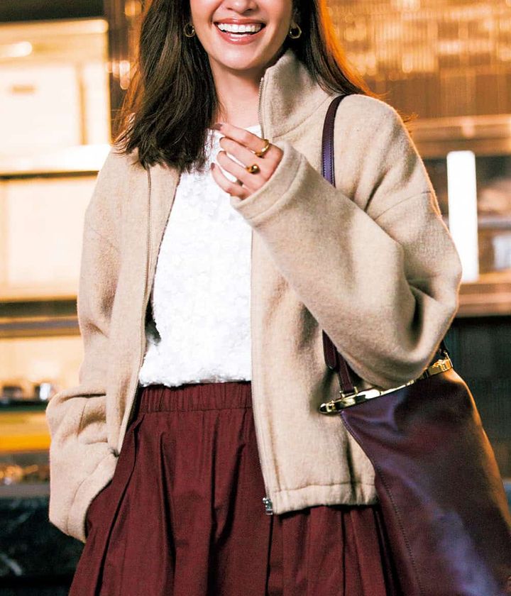 いろいろなテイストに着こなせて、どんなボトムスも受け止めてくれる「ブルゾン」は11〜12月にいちばん使えるアウター。ロングコートより重さがなく、でも寒いときにはしっかり暖かさをキープしてくれる、ウール素材が頼りになります!