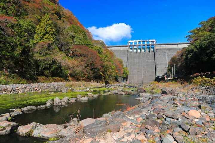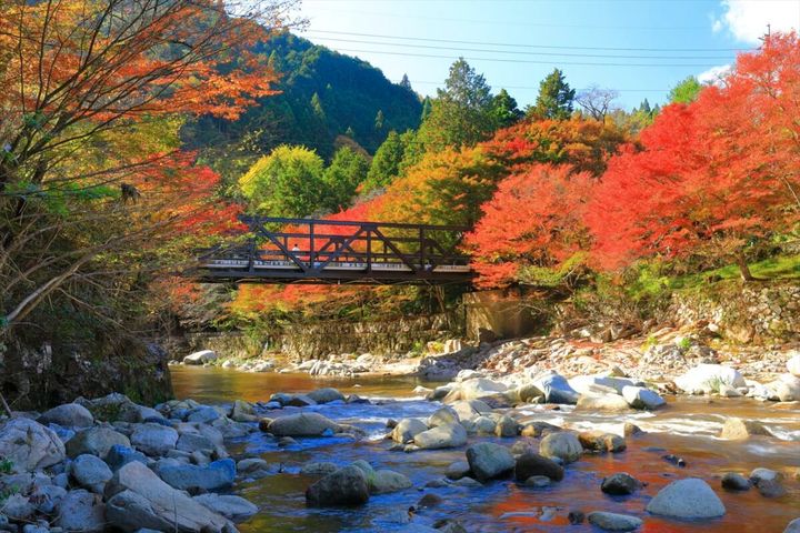 鏡野町の「奥津温泉」についても、湯原温泉と同じように自然と一緒に温泉が楽しめる場所として紹介。温泉街から車で約5分ほどの場所にある奥津渓は、四季折々の景色が楽しめる景勝地。これからは紅葉が見ごろとのこと。
