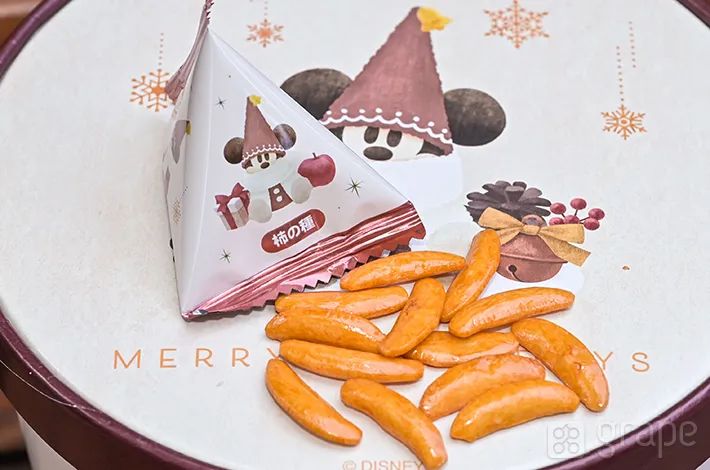 テトラ型のパッケージの中には、柿の種が入っています。