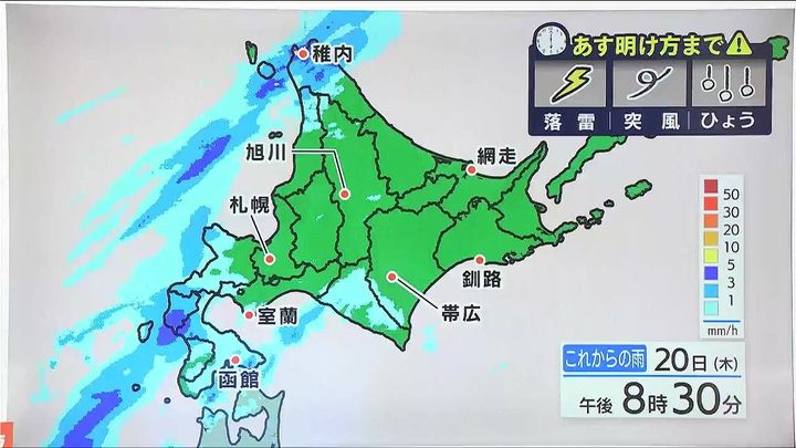 ※20日午後5時時点の情報です。最新の気象情報は、HBCウェザーセンターのホームページなどでご確認ください。HBCは気象庁の認可を2001年に得て以来、民間気象会社の一つとして「HBCの独自予報」を発信しています。
