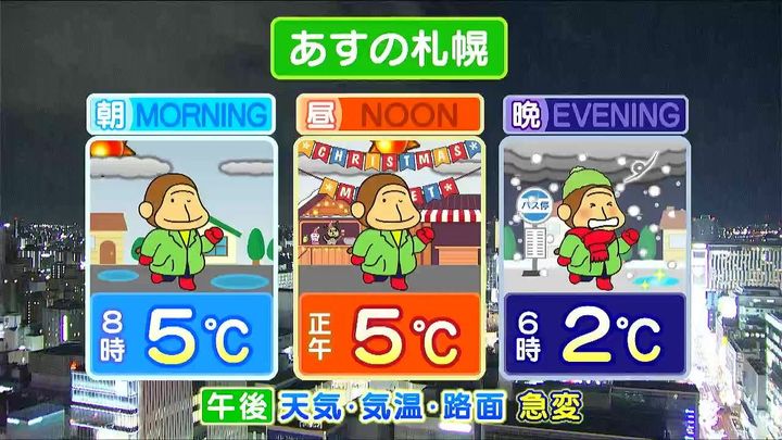 あすは午後4時半から点灯式です。大通公園2丁目ではミュンヘンクリスマス市が始まります。札幌国際スキー場はあす21日(金)オープン、一部コースで滑走できます。