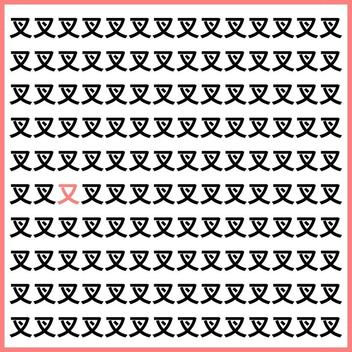 たくさんの「叉」の中に、1文字だけ違う漢字が混ざっています。