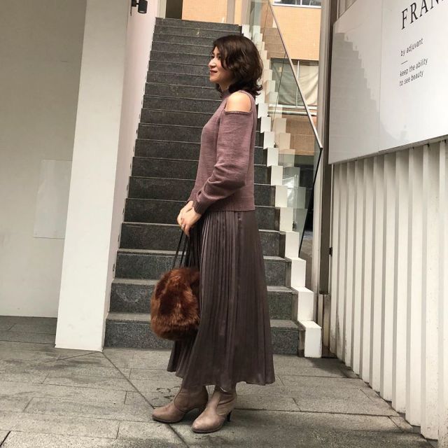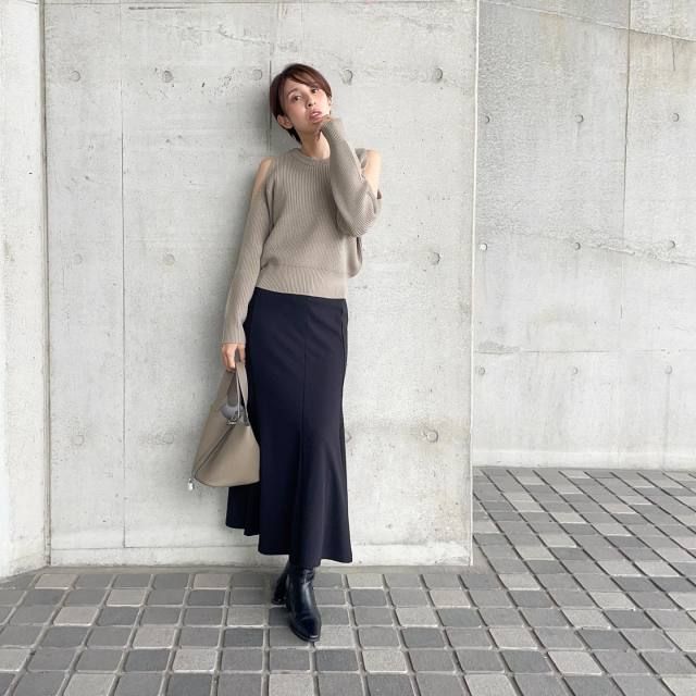 2025秋は肌見せの服がトレンドに浮上。そこで40代50代におすすめなのが「長袖でオープンショルダーの服」。アウターを羽織る季節なら気楽に楽しめますよ。