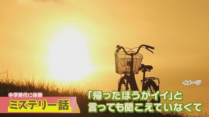 純平さん:「そこに遊びに行くことになり、自転車で10人ぐらい。入り口を自転車で入った瞬間にめっちゃ寒気がして、嫌だなと思った。『コレ帰った方がいいんじゃない!』ってみんなに言ったら、聞こえていなくて。トンネルの中は声が響きやすいのに聞こえてないみたいで…自転車が動かなくなって」