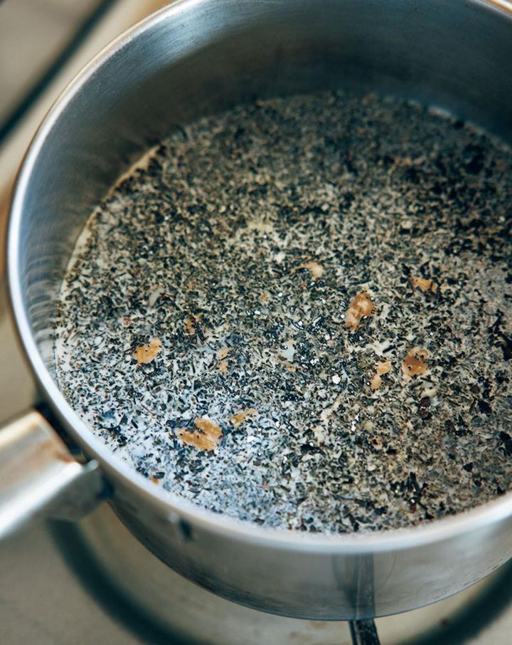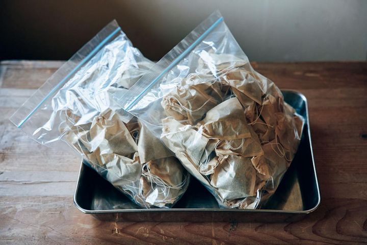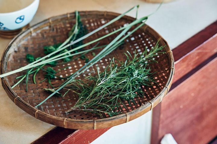 ハーブはお茶や料理に。朝食のスープには必ず入れます。庭に生えているドクダミ、クズ、ビワの葉はミントと一緒に天日に干したあと、土鍋で炒って手揉み茶に。オーブンでも作れますが、私の場合は土鍋のほうが上手にできるんです。