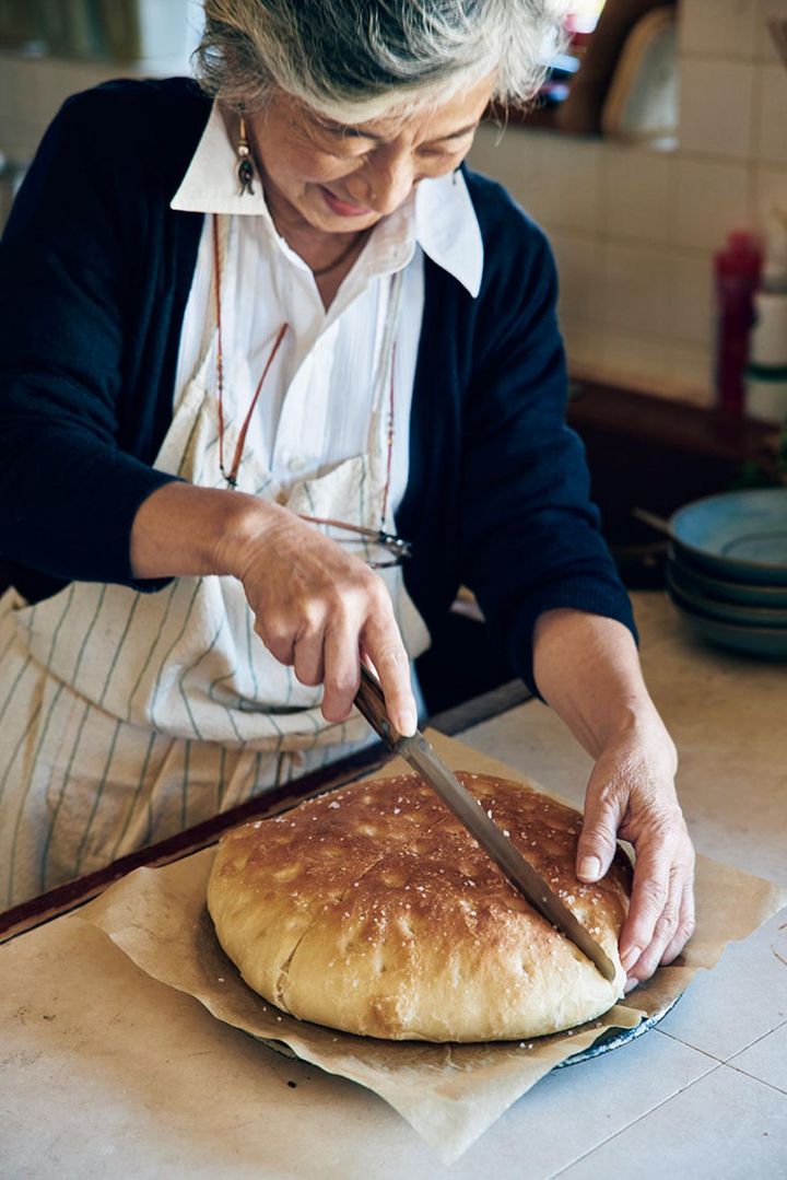好きなときに好きなものを好きなだけ。特に禁制はせず、なんでもおいしくいただくのが私の健康法です。なのでお酒も甘いものも嗜みますが、日々欠かせないのが手作りのおやつ。庭仕事や家事で体力を消耗してしまうので、パンやおむすびといったおなかにたまるおやつで元気を回復しています。今日はローズマリー入りのフォカッチャを。
