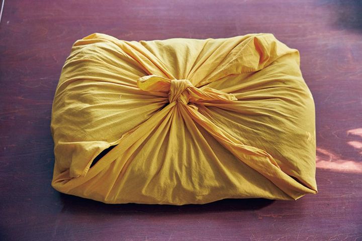 わが家には衣装ケースがありません。オフシーズンの服はふろしきに包んで水屋だんすの下段に収納しています。スペースに合わせて形を変えられ、通気性があり、軽くてとり出しやすい……と、とにかく万能。洗えるので衛生面も安心です。