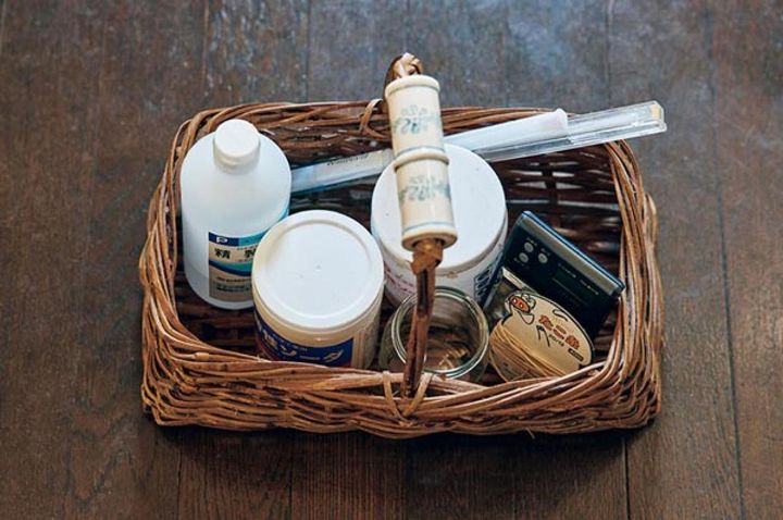 農薬に触れていない木の葉や野草は日本酒につけておくと、化粧水として使えます。今、ストックしているのはドクダミ、ビワ、ヨモギとユズの種。ユズの種にはぬめり成分があるので、それぞれのエキスに混ぜて、オリジナル化粧水を作っています。私は市販の化粧水は使わないので、肌のお手入れはこれだけ。肌が弱い人には合わないかもしれないので、使うときはパッチテストを行ってからにしてください。