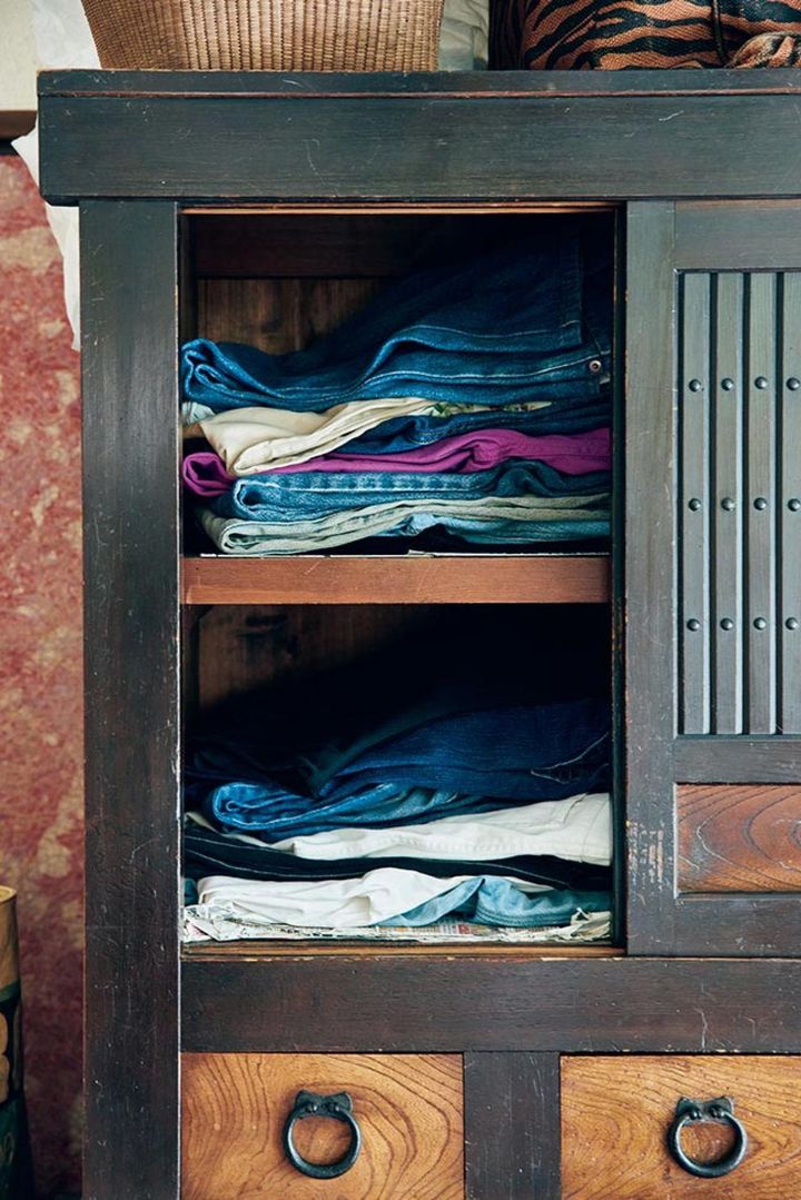 昔からトレンドに興味がなく、たまたまご縁のあったものを長く使っています。こういった性分からか昔なじみの友人から「これ使って」と古物を引き受けることもしばしば。たとえば今は貴重な水屋だんすもそのひとつ。食器棚は間に合っているので、洋服を入れてみたらサイズがぴったり。固定観念にしばられることなく柔軟に暮らしていければと思っています。