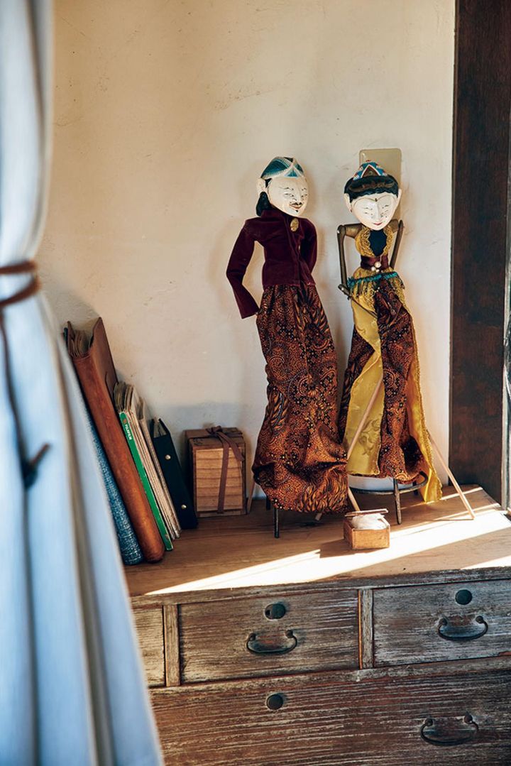 物欲は強いほうではないのですが、国内外問わず、手仕事の品に惹かれます。このインドネシアの工芸品のワヤン(操り人形)はいとこがプレゼントしてくれたもの。天然素材で作られる家具やかご、装飾品は年を重ねるほどに味わい深くなり、暮らしにぬくもりを添えてくれます。