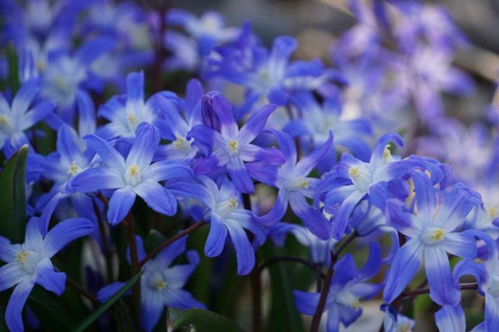 霜や凍結にも強く、いち早く春を知らせてくれる秋植え球根です。チオノドクサの芽出し球根はあまり流通していませんが、球根は一度植えれば毎年よく咲くのでおすすめ。いくつかの種類があり、1茎に3~8輪ほどつく花は群れ咲かせると、輝くようにきれいです。