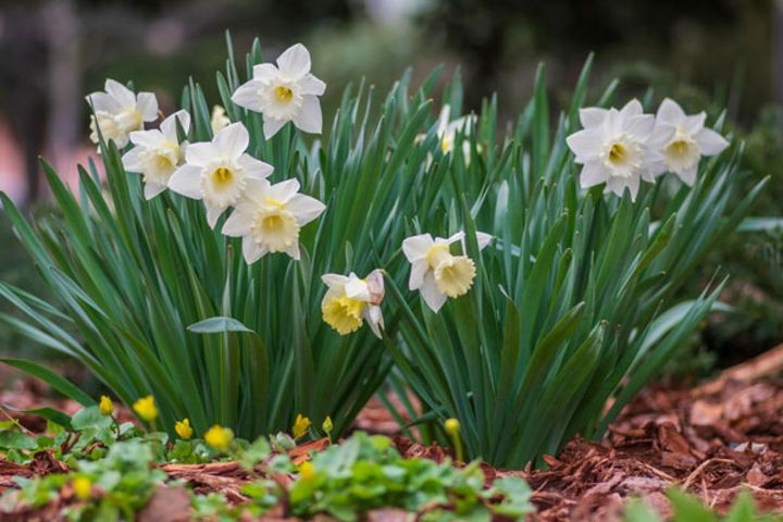 1茎に数輪の小花を咲かせる房咲きスイセン、中央の花冠が目立つラッパスイセンなど、さまざまな種類があります。甘い香りや花立ちのよさ、丈夫さで人気です。一番早く咲き出すのは房咲きタイプですが、葉も早く出て寒さで傷むため、寒冷地にはラッパ咲きが向きます。