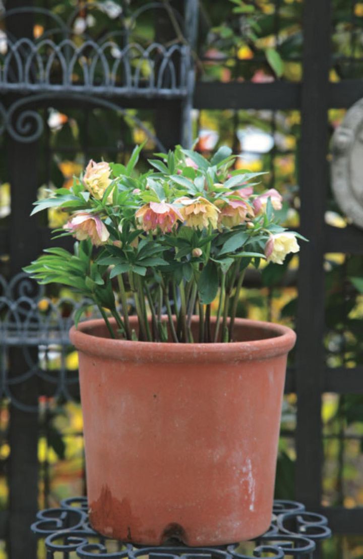 「クリスマスローズは2カ月近く花が咲き続けますので、その間は花を存分に楽しみます。その後、私は毎年、3月末ごろに花柄をすべて摘みとってしまいます。早めに切ることで翌年の花芽がたくさんつき、また鉢からあふれるような花を楽しめるのです」