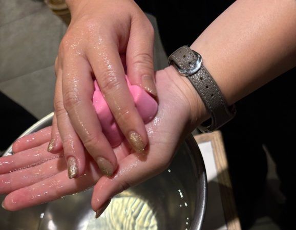 触り心地が良いプニュプニュの石鹸で洗った後にボディーローションでお肌をしっとりさせて、キラキラしたボディーパウダーで仕上げ!
