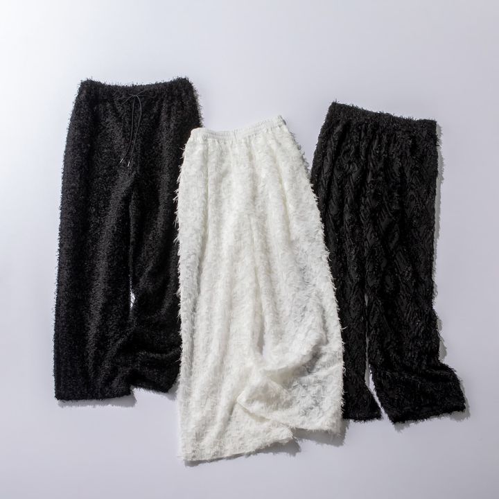 "もけもけ”フェザーパンツでカジュアルアイテムを即アップデート