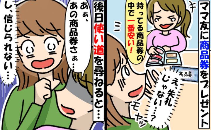 「あなたがくれたの、一番安いよ」と笑うママ友…後日、贈った商品券が最悪の末路を迎えた理由は!?