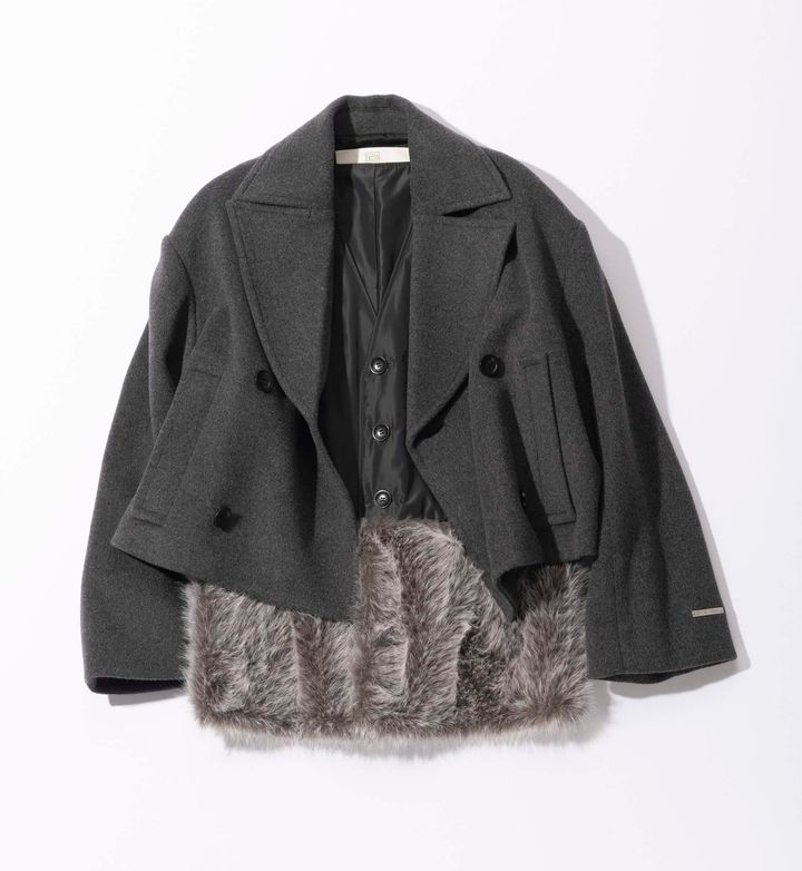 一見シンプルなPコートながら、実は3WAYで着られる実力派!インナーのキルティングジレは裾の部分がファーになっていて、ショート丈のアウターから覗かせればひとクセ効いたファー付きコートに早変わり。ジレとアウターはセパレートで着てもレイヤードしてもよし、シーンごとに雰囲気を変えて楽しんで。