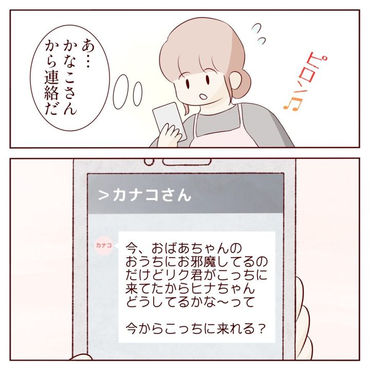 自分だけ食事もお風呂も済ませてのんびりくつろぐリクを見てげんなりしていると、義姉カナコさんからメッセージがきました。義祖母の家に来ているカナコさんからの呼び出しです。