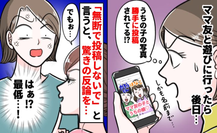 私の息子が写った写真を、勝手にSNSへ投稿したママ友。顔がはっきり写っているし、本名までも記載……。やめてほしいと伝えたところ、ママ友はまさかの発言をしてきて……。