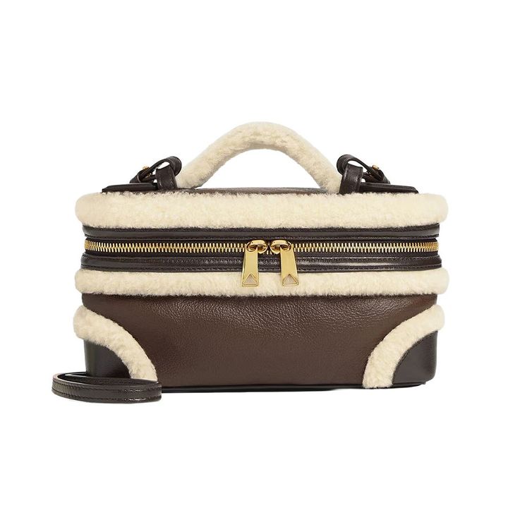 トレンドのバニティバッグは、リュクスな素材で差をつけて。シープスキン製の“バン バン”は、ハンサムなアビエータージャケットを思わせる一方で、どこか愛らしさも放つデザイン。内側にはカードスロットが6つあり、実用性も抜群。