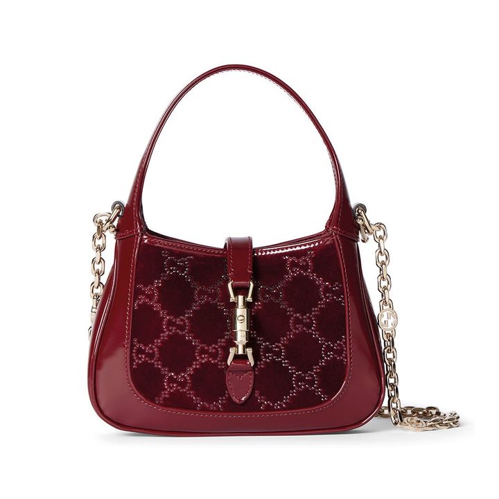 言わずと知れた名品“グッチ ジャッキー 1961”を、ベルベット×クリスタルのGGパターンで煌びやかにアップデート。ドレスアップにオーラをプラスしてくれるのはもちろん、カジュアルな装いの格上げ役としても最適。