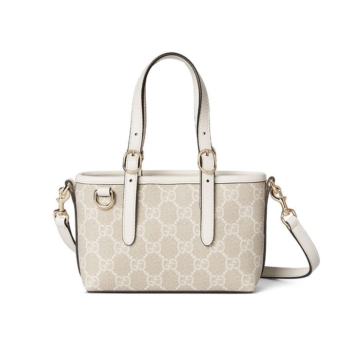 “GGエンブレム”ラインからお目見えしたミニバッグは、日々の相棒にぴったり。表面は軽やかなコーティングキャンバスのGGパターンで、内側には「グッチ」らしい“グリーン・レッド・グリーン”のファブリックを採用。Dリングが付いているので、お気に入りのチャームでアレンジするのもおすすめ。