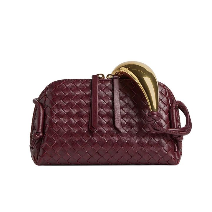 身軽にお出かけしたい日にぴったりの“コンサート ポーチ”に、彫刻のようなハンドルが付いた新作が仲間入り。精緻なイントレチャート技法と、コンテンポラリーなメタルパーツの対比が、スタイリングにさりげないエッジをプラス。