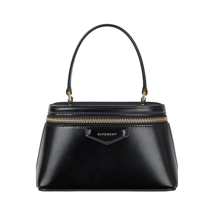 幾何学的なフォルムが特徴の“アンティゴナ”には、バニティタイプがお目見え。取り外し可能なメタルチェーンが付属していて、クロスボディとハンドバッグの2WAY仕様に。艶やかなボックスカーフレザーは、優美なオーラたっぷり。