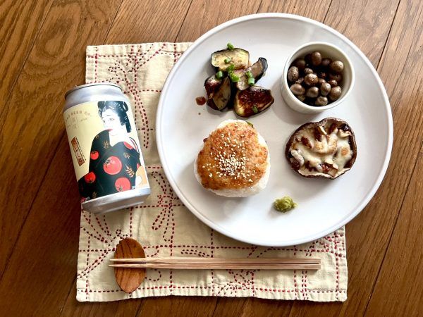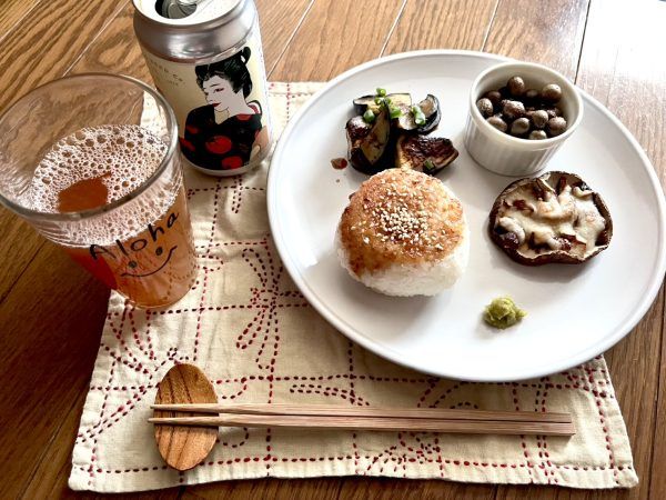 焼きおにぎりとしいたけの間には、同じく高尾で営業されているつぼ萬さんの柚子胡椒を添えました。焼きおにぎりに柚子胡椒を添えるのは、この秋のマイブームです♪