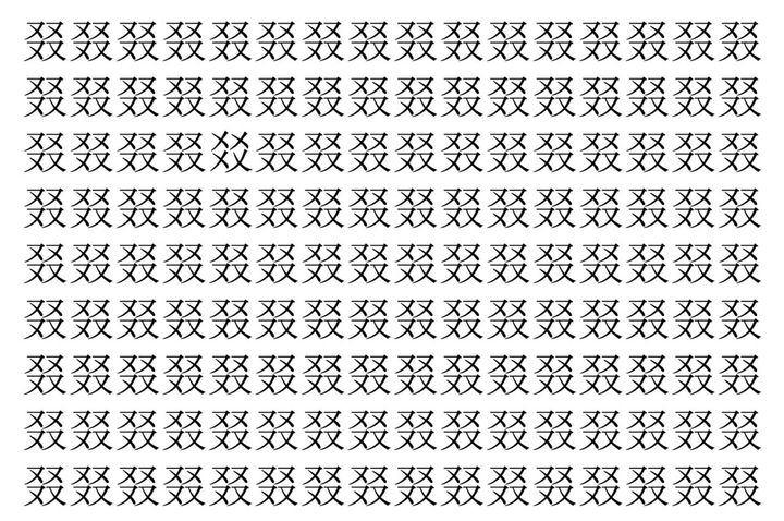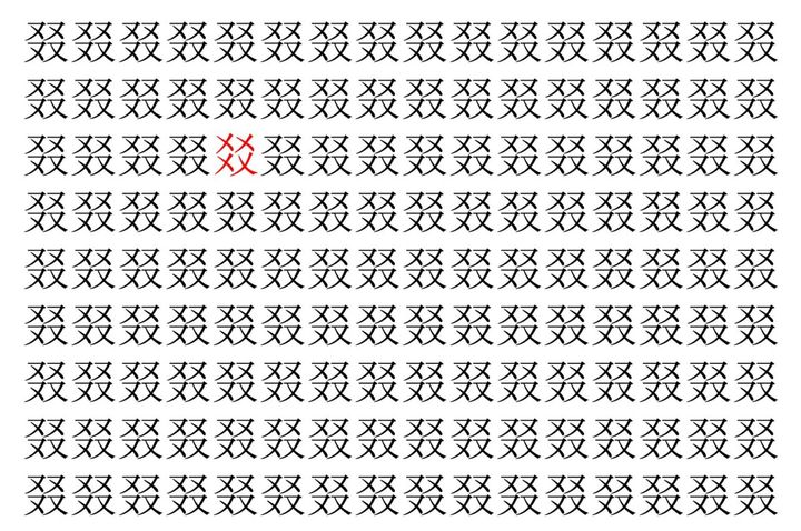 2. 【脳トレ】「叕」の中に紛れて1つ違う文字がある!?あなたは何秒で探し出せるかな??【違う文字を探せ!】