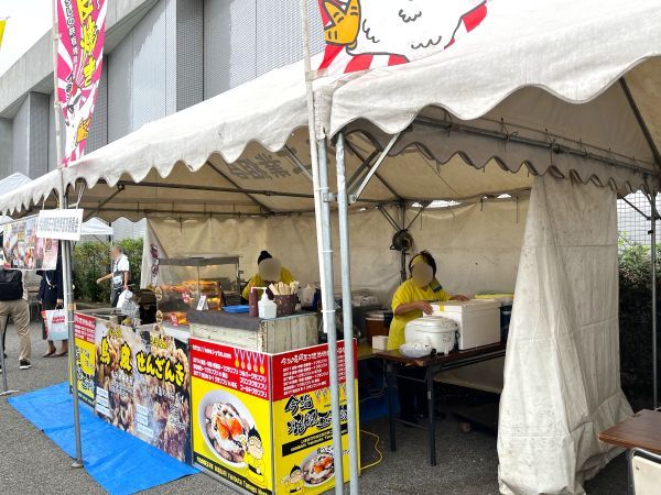 飲食テントには今治名物の焼豚玉子飯とせんざんき。