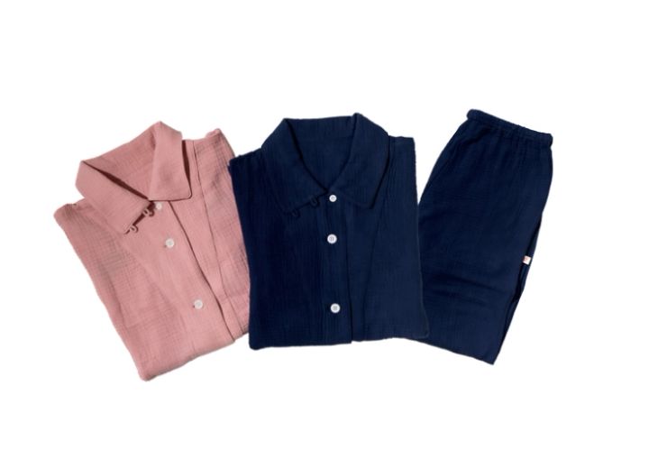 着心地がいい天然コットン100%のガーゼ素材で優れた睡眠環境を。睡眠改善パジャマには見えない可愛さ。ネムリカパジャマ¥23,800/mariness
