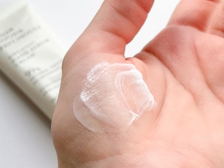 シア脂やサジーオイルなどの油分を配合しているので重たい使用感かと思いきや、ふわりと軽くてとっても伸びがいいんです。さらに、するっとなじみがよく、クリームというより、こっくりとした乳液に近いテクスチャーです。