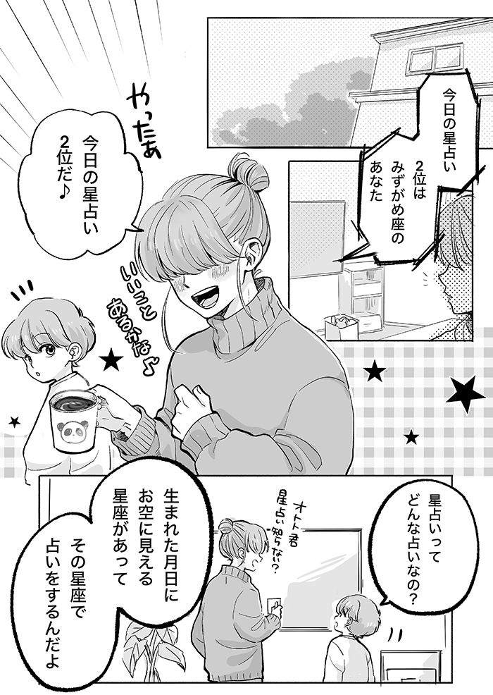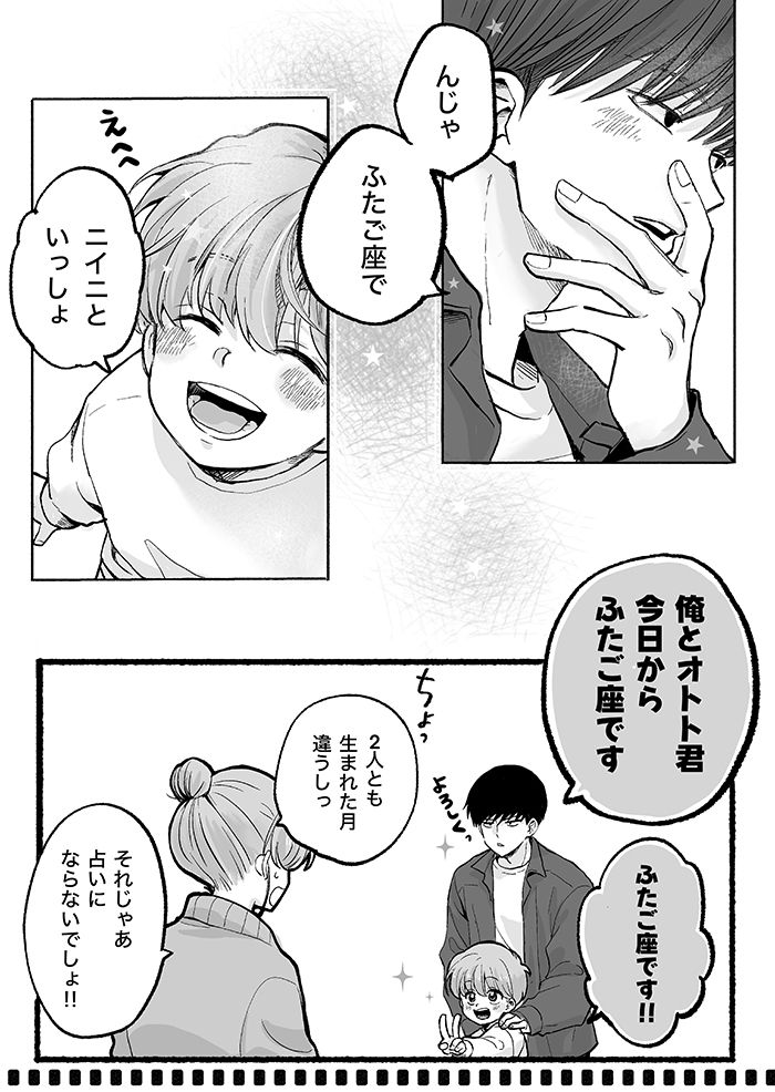 10歳差兄弟のニイニとオトト君。16歳のニイニは弟思いの優しいお兄ちゃんだけど、思春期まっただなかの高校生でもあり……。今回はオトト君の星占いのお話です。