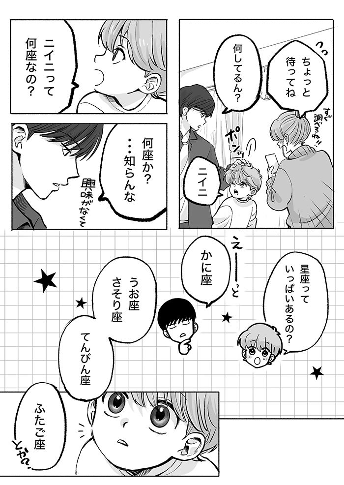 3. 「僕は何座なの?」「ニイニは何座なの?」自分の星座を知らない兄と弟。そしてわかった星座は…【ぼくのニイニは高校生・49】