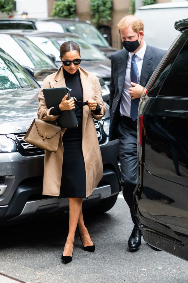 マックスマーラの「マニュエラ アイコンコート」は、おそらくメーガン妃の最も代表的なアイテムのひとつ。写真の2021年のニューヨーク訪問をはじめ、これまでに何度もこのコートを着用してきている。