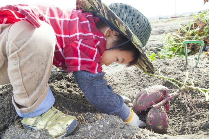 といっても、たつきは1歳児クラスなので、先生があらかじめ掘っていたおいもを「おいもさんあるかな〜?」と掘り返すだけのものでしたが、得意げにおいもを持つ姿に感激してしまいました。