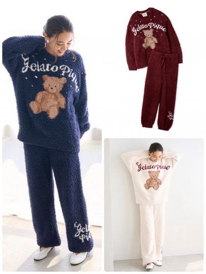 スノーベアシリーズのオンライン限定セットアップ。着用した瞬間からふんわりした肌あたりが魅力。お家の中でもホリデームードを楽しめるルームウェアは、お泊まり会やホームパーティでお目立ちできそう♡