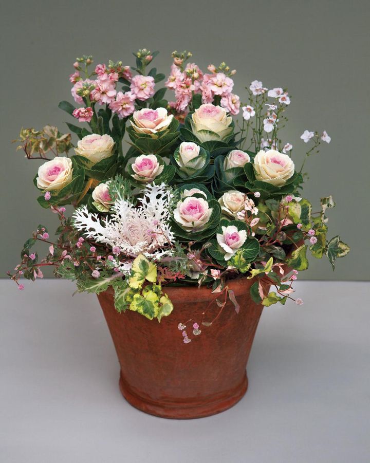 以前の大型種とは違い、冬の寄せ植えに欠かせないのが「ミニハボタン」。ここでは、英国園芸研究家の吉谷桂子さんにミニハボタンの寄せ植えを教えていただきました。晩春に変化するハボタンの姿にも注目してみてください。