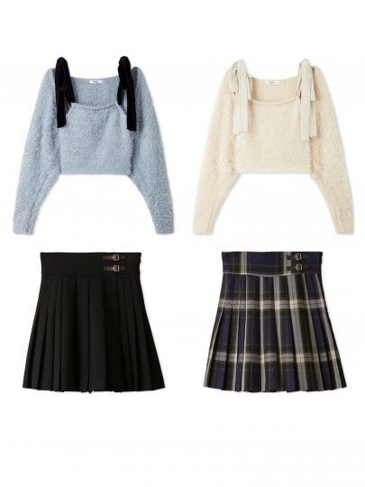 一緒にコーデしたい「プリーツミニスカート」は、温かみのある肉厚な生地で秋冬にぴったり。ウエスト位置の両サイドはリブ編み切り替えでフィット感を強調。ボトムインもアウトもサマになります!