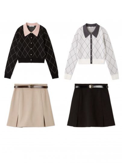 品があるアーガイルチェック柄のカーディガンに、バイカラーの襟を組み合わせたアイテム。やや短めの丈感で、ボタンを閉めて一枚で着ても、羽織りものとして取り入れるのもOK。コーデの幅が広がります。