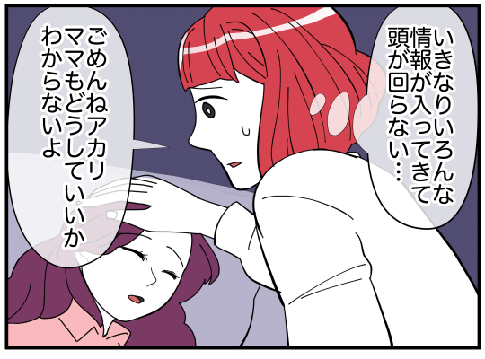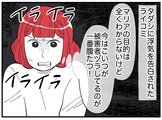 娘をごまかすためとはいえ、不倫していたことを「たいしたことじゃない」と片付けた夫を許せない主人公。そして、矢部マリアはなぜ娘に近づいたのか、彼女の夫と娘はなぜ姿を見せないのか。あらためてその不自然さに疑問を抱く…