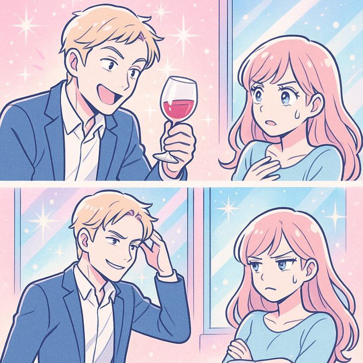 「そんなに俺のこと好き? 照れなくていいよ、顔に出てるから」と、自信満々に赤ワインを揺らす彼。